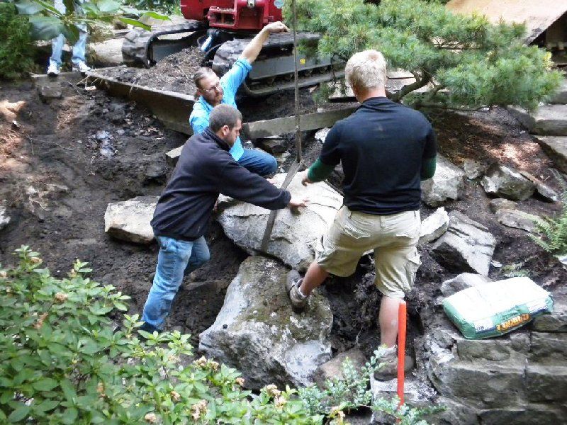 - Staff training in building with natural stone and water, plant placement, and design instruction